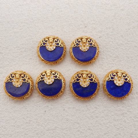 Crafted with a stunning silver and gold plated finish, each pendant bead features a delicate lace-like metal design that beautifully encircles the vibrant lapis gemstone. This intricate detail not only highlights the rich blue hues of the lapis but also adds a touch of sophistication to your jewelry creations.