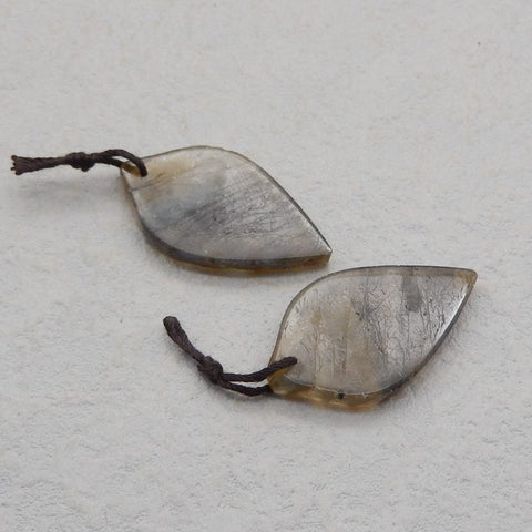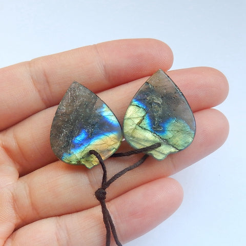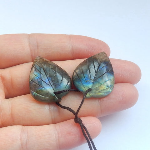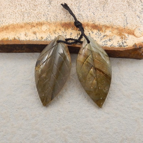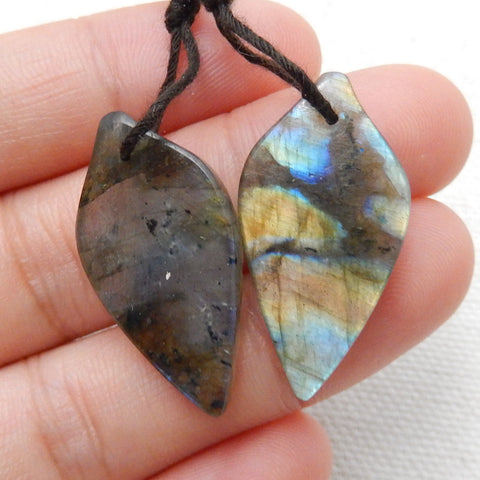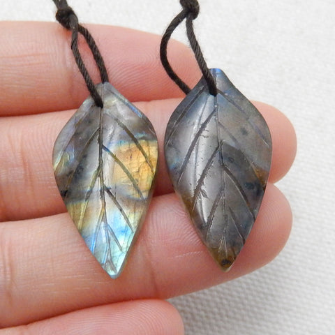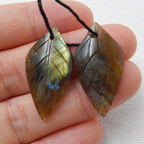 Paire de boucles d'oreilles en feuille sculptée en Labradorite, 29x17x4mm, 6.1g