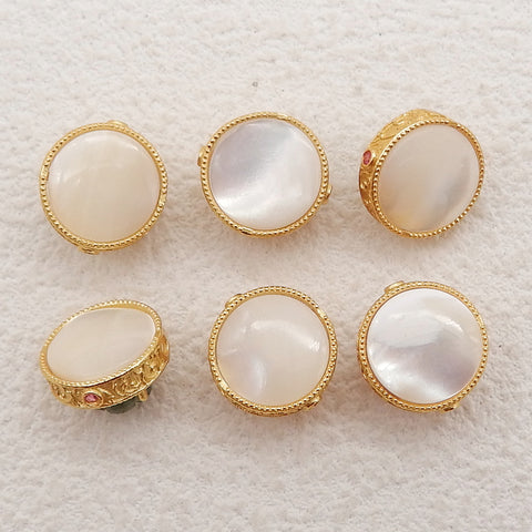 BITEFU 1 PC Silver Gold Plated Natural High Quality Tourmaline And MOP Round Gemstone Pendant Beads, Jewelry DIY Making, 0.8g