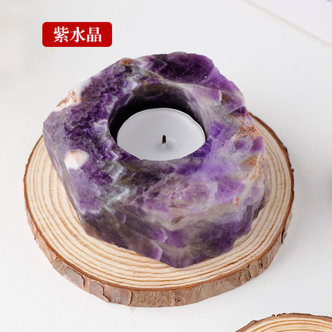 Gomggsale natural crystal raw stone candlestick ornaments - Amethyst pink crystal green fluorite crystal aromatherapy stone incense insert stone base